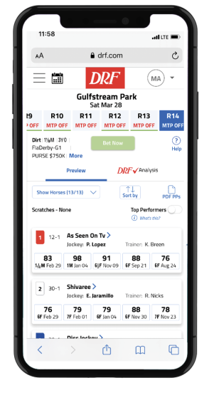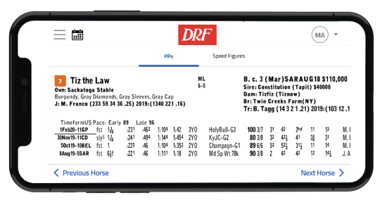 View running lines, analysis, selections, Beyer Speed Figures, odds, Closer Looks and more on-the-go!